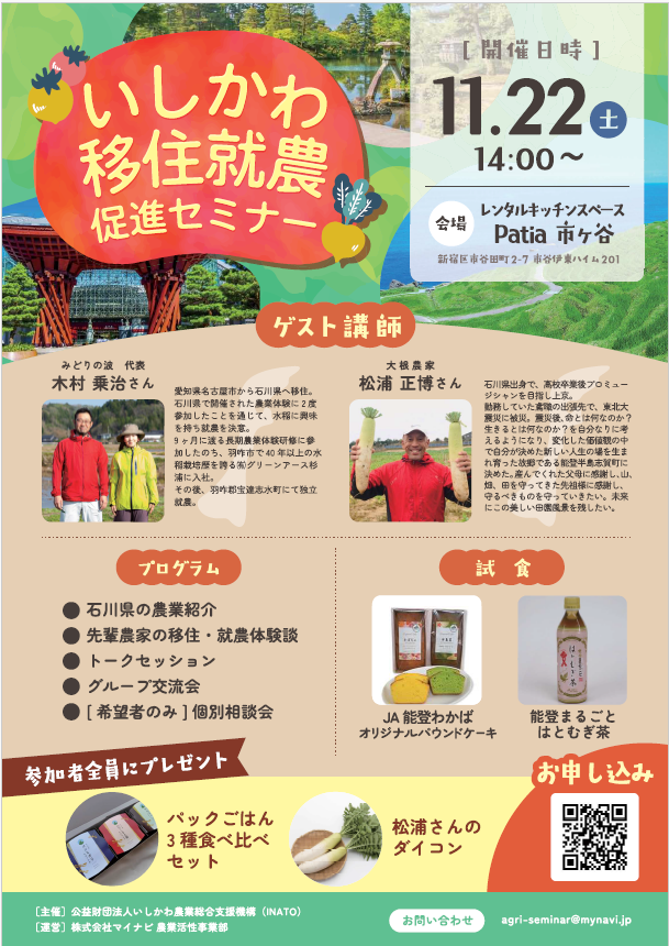 11月22日(土)いしかわ移住就農促進セミナー(東京)を開催します!